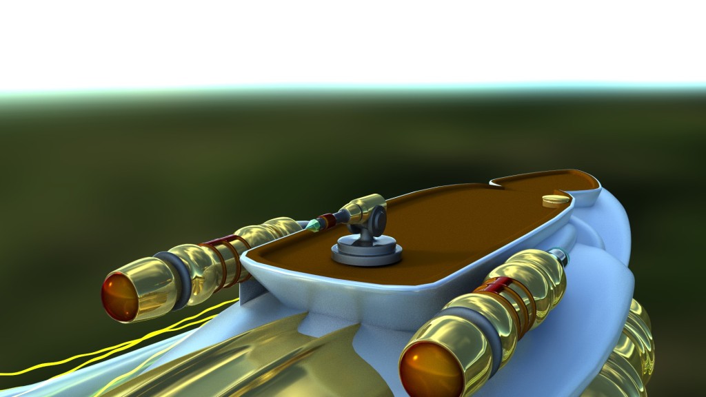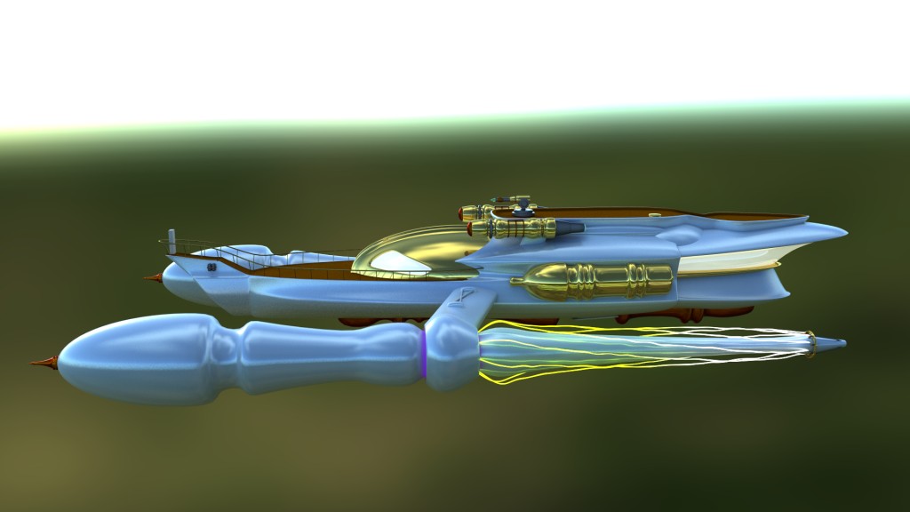 The model went through multiple designs in order to find something distinctive enough (and different enough from a "flying boat") to give Zanidar its own feel. One of the constraints of the model is that it also had to be converted in to a deck plan on a 5 foot square grid, so the ship had to be built to contain sufficient space.